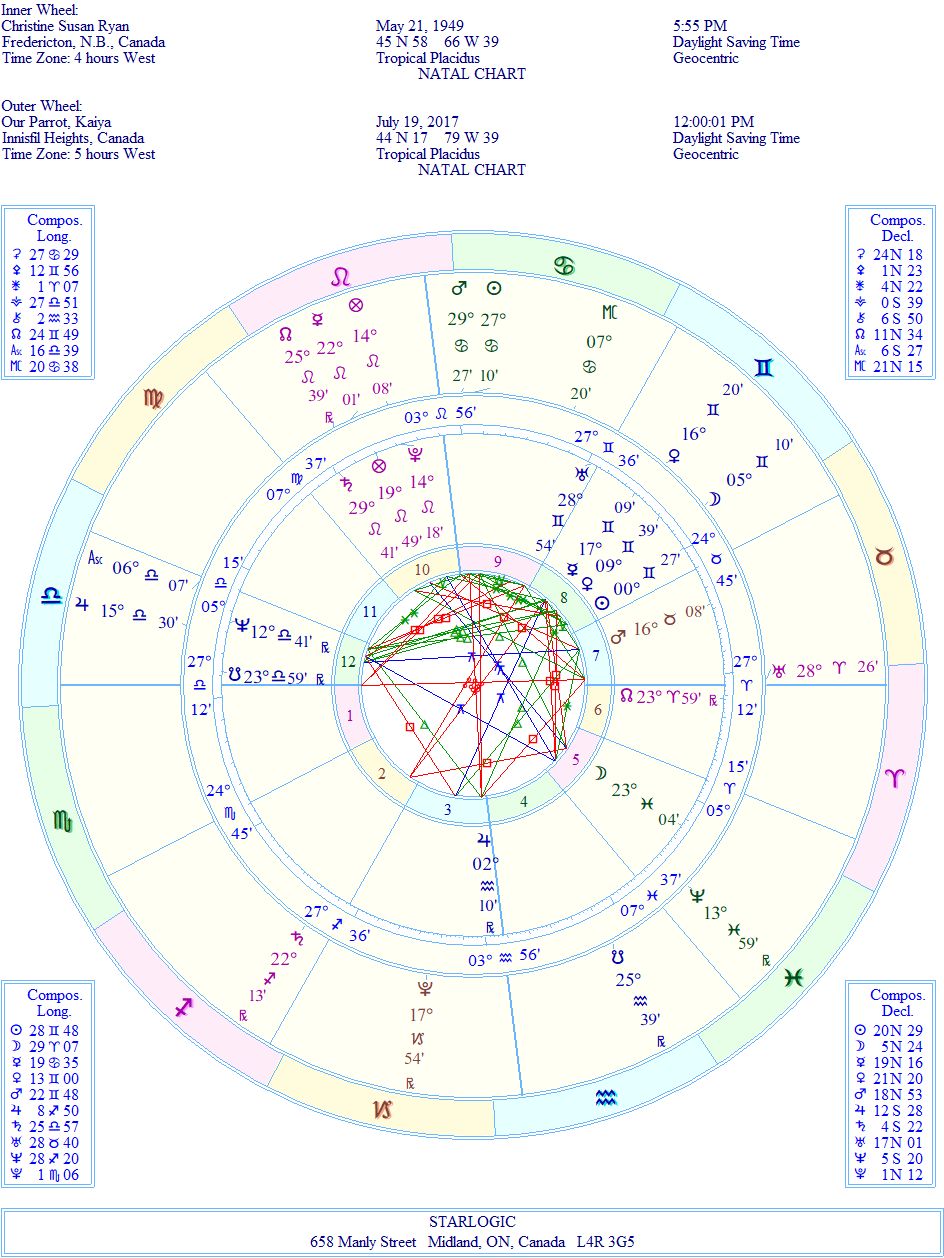 Does there not seem to be about ten specific planetary connections between them? Especially significant is Kaiya’s Uranus on Susan’s Descendant. Kaiya gets excited every time Susan comes home from her travels. I especially like the almost exact conjunction between Susan’s Pluto and Kaiya’s Part of Fortune.
