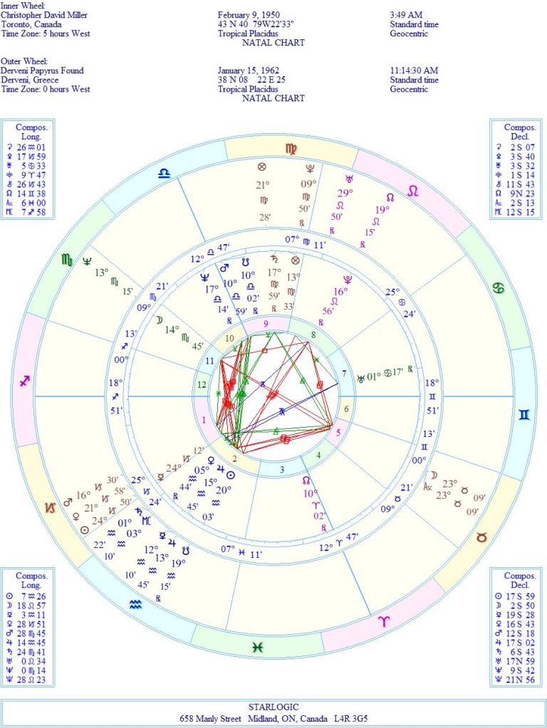 I should not have anything to do with the discovery of the Derveni papyrus, should I? And, yet, just for fun, I compared my birth chart with the ‘event’ chart from this date in 1962. I was surprised.