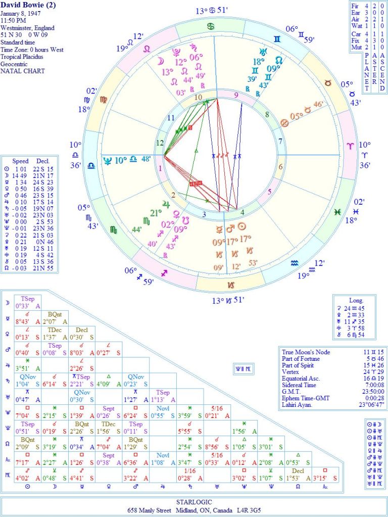 Is this one of my prime examples of the Mandela Effect? I even remember discussing the fact that David Bowie‘s birth time of 9:00 am should actually be 11:50 pm, as stated by the author of his biography, Paul Morley.