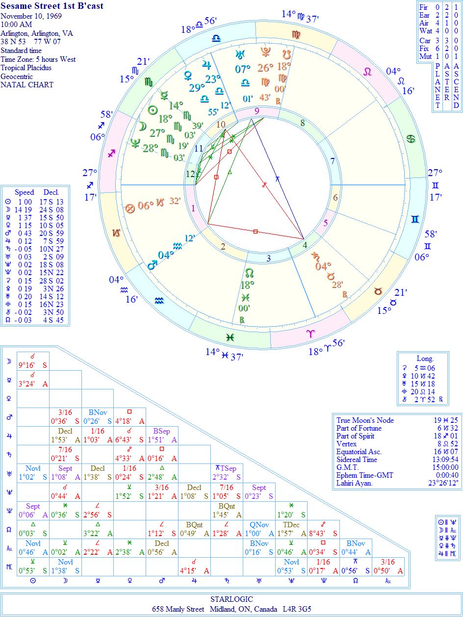 Because Malcolm Gladwell references Sesame Street in his chapter on ‘The Stickiness Factor’ in his book “The Tipping Point”, I thought it might be interesting to look at the children’s TV show phenomenon from a different perspective, astrology.