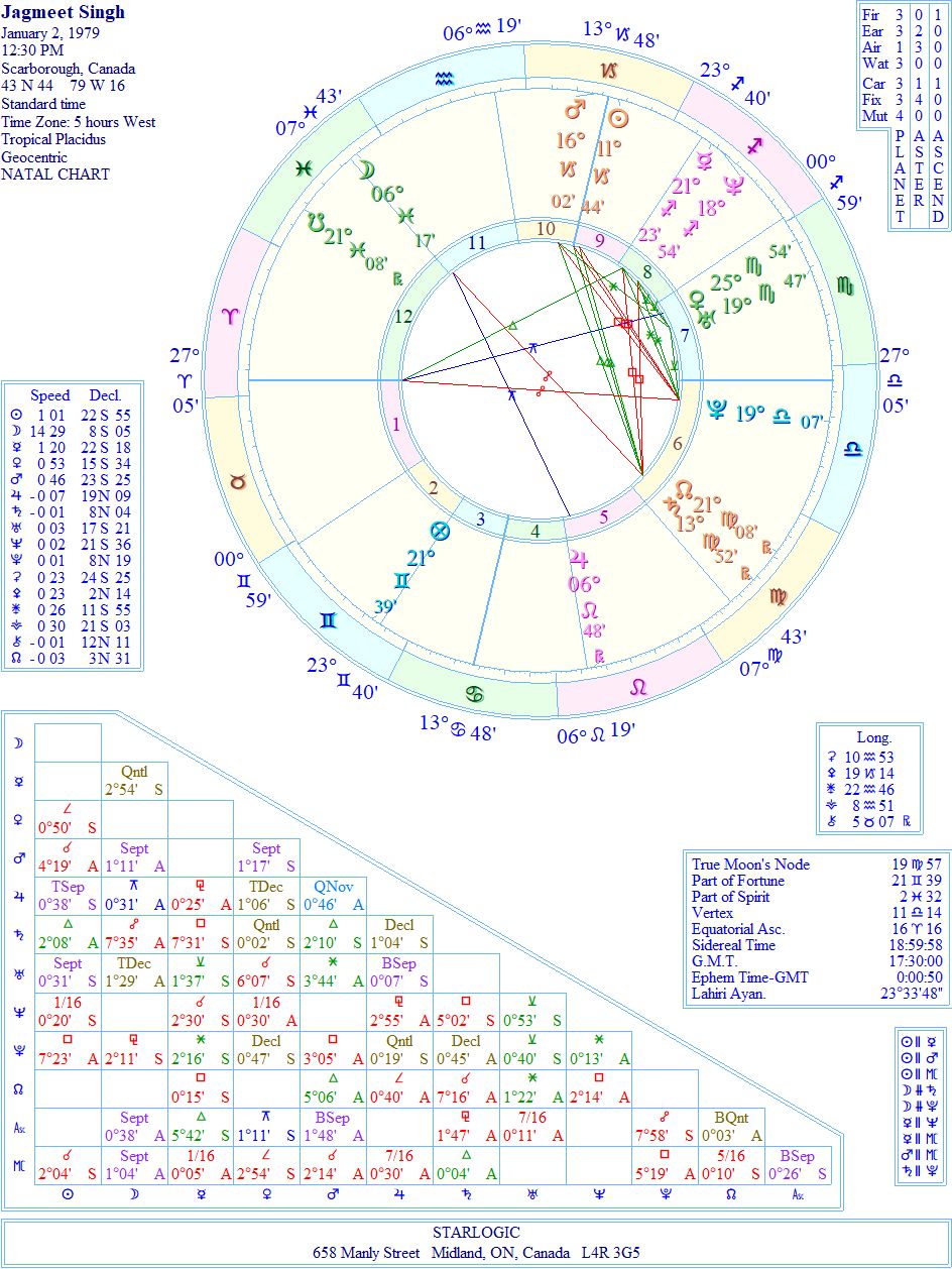 I have rectified the timing of his birth chart, based on the age (39) when he married his wife (Venus).