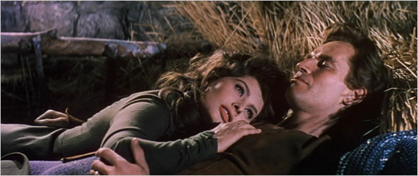 I have a thing for hay, and rolling in it. Probably this image was the basis for that. This was their last night before the big battle in the movie. The Cid had been exiled by the King of Castile, but comes back to save Valencia from the Moors. The love story has a sad ending, but the hero became a legend anyway.