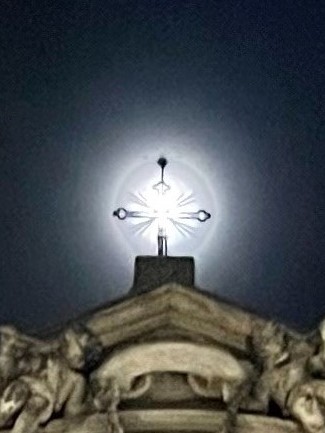 The image of the church’s cross is superimposed on the moon to create a shining light for Lent.