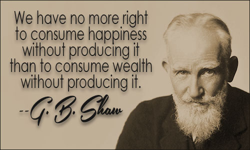 From my own perspective, I find people in general fascinating, but irritating beyond measure individually. The same could be said of Bernard Shaw, as he preferred to be called. Evidently, he had a hut in his garden (where he did his writing) that he named “London” so that whenever his wife got a telephone call asking to speak with him, she could honestly say, ‘He’s away in London.’
