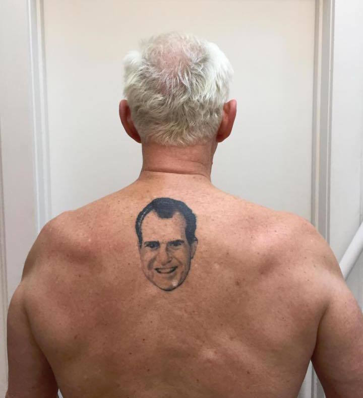 I missed something about Roger Stone. It took a comment from my astrology friend, Ellie, to open my eyes to an obvious association. Stone has an tattoo of Richard Nixon on his back. What’s that about?