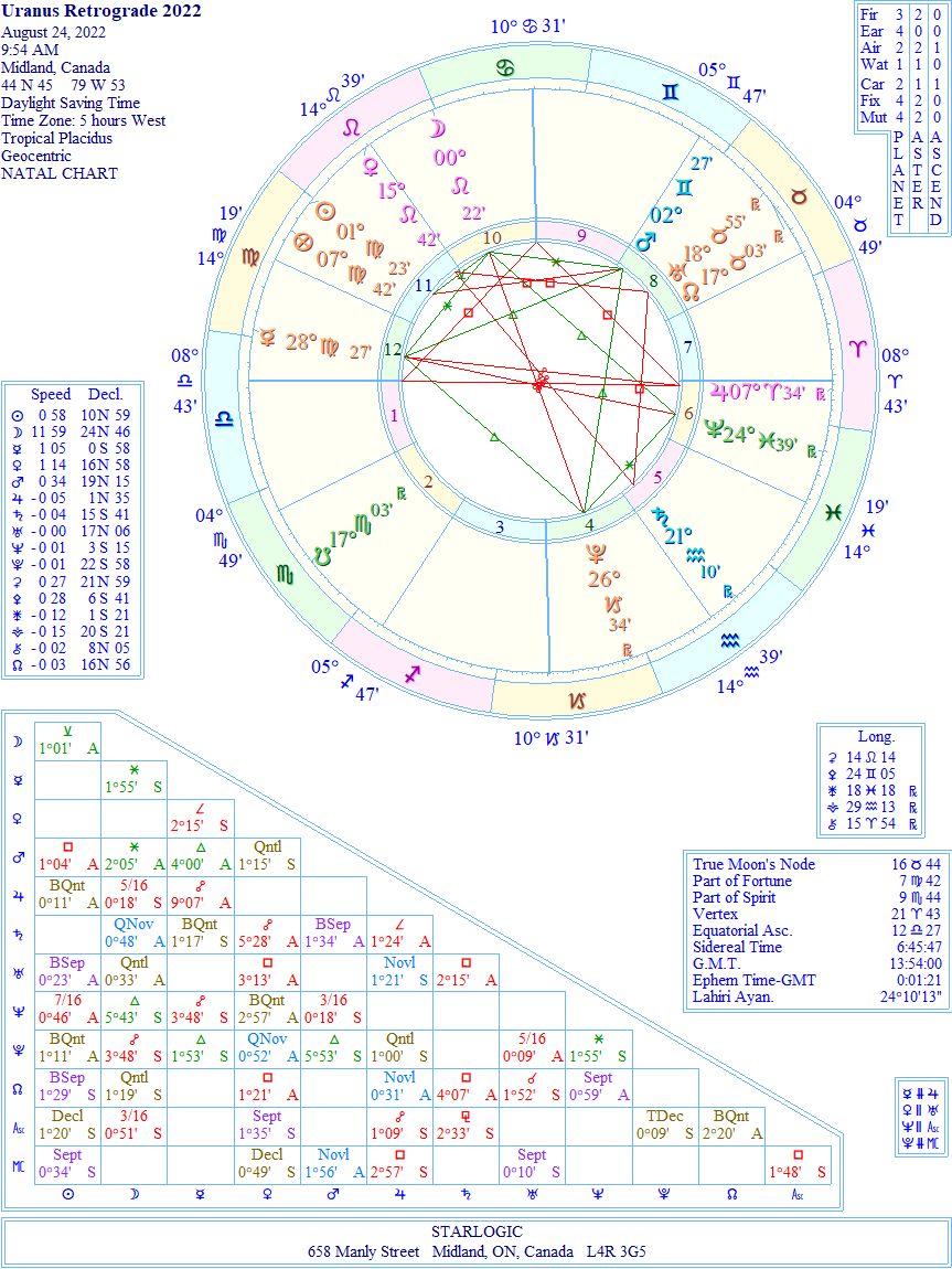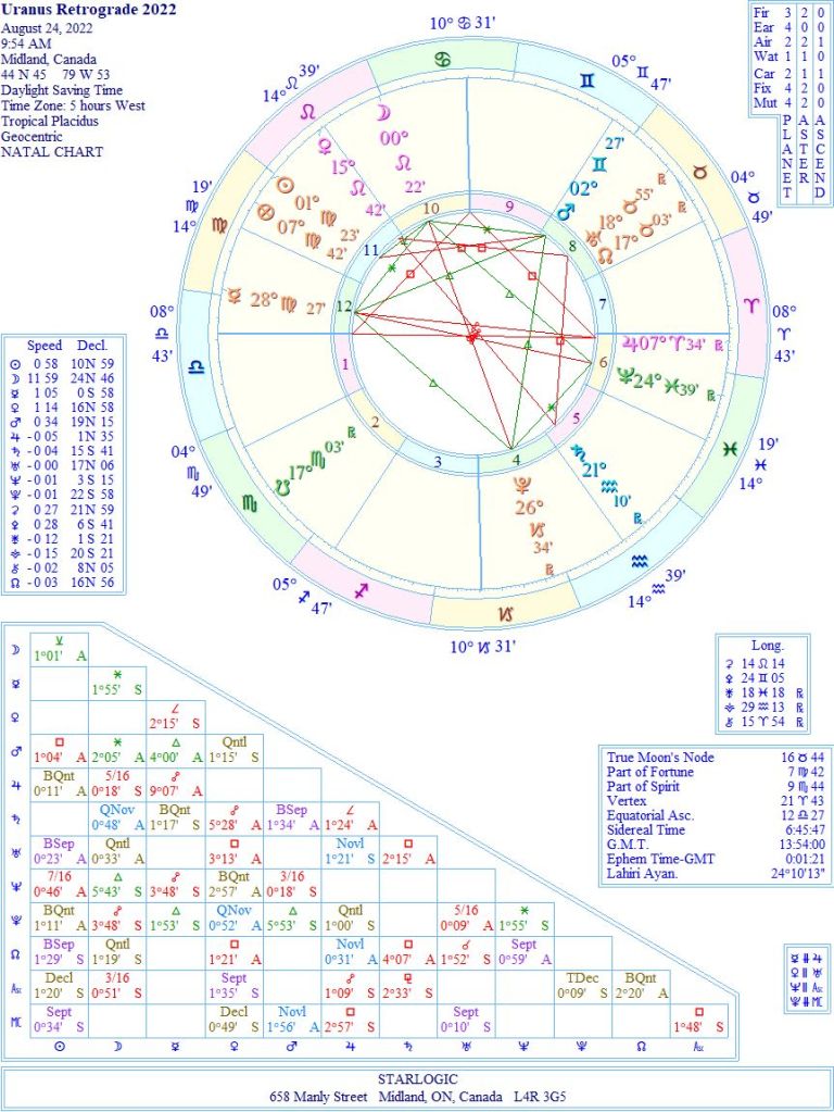 On a global scale, this can be experienced as an upset to the ‘norm’. And has it ever been so far: Uranus entered Taurus on March 7, 2019. It will finally move on to Gemini on July 7, 2025. That’s a long time. We are sitting at the mid-point of that transit and Uranus went retrograde (backward motion) an hour ago.
