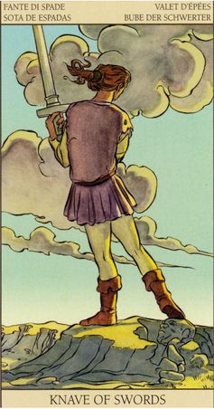 You can imagine my surprise when this card showed up in Susan’s cousin’s impromptu reading for me. Here’s what it could actually mean (and please note that the other name for this card is Knave of Swords):