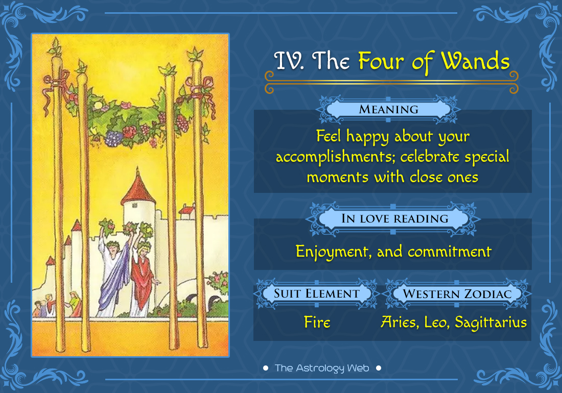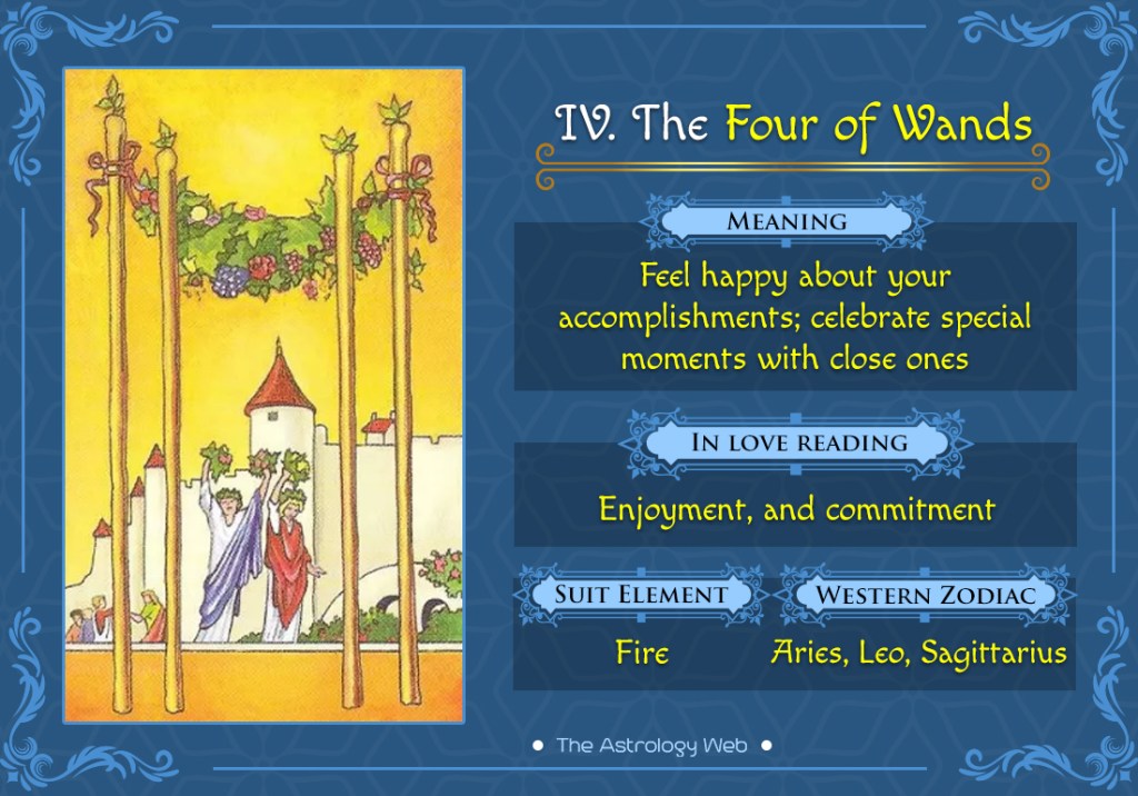 On the top of a hill, a man looks into the distance while a caravan of horses and wagons comes up behind him. He has probably gone ahead to scout the area; perhaps he is an explorer. His clothes are colored red (a desire for knowledge) and green (the hope of obtaining it). The caravan represents a project, an idea, or ambition involving many other people. The caravan is at the bottom of the hill and about to go up the steep path to the top of the mountain; this means that the journey will be rough, and that the destination is a long way off.