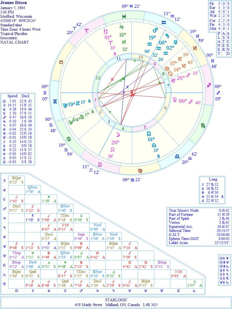 Jeane Dixon (January 5, 1904 – January 25, 1997)