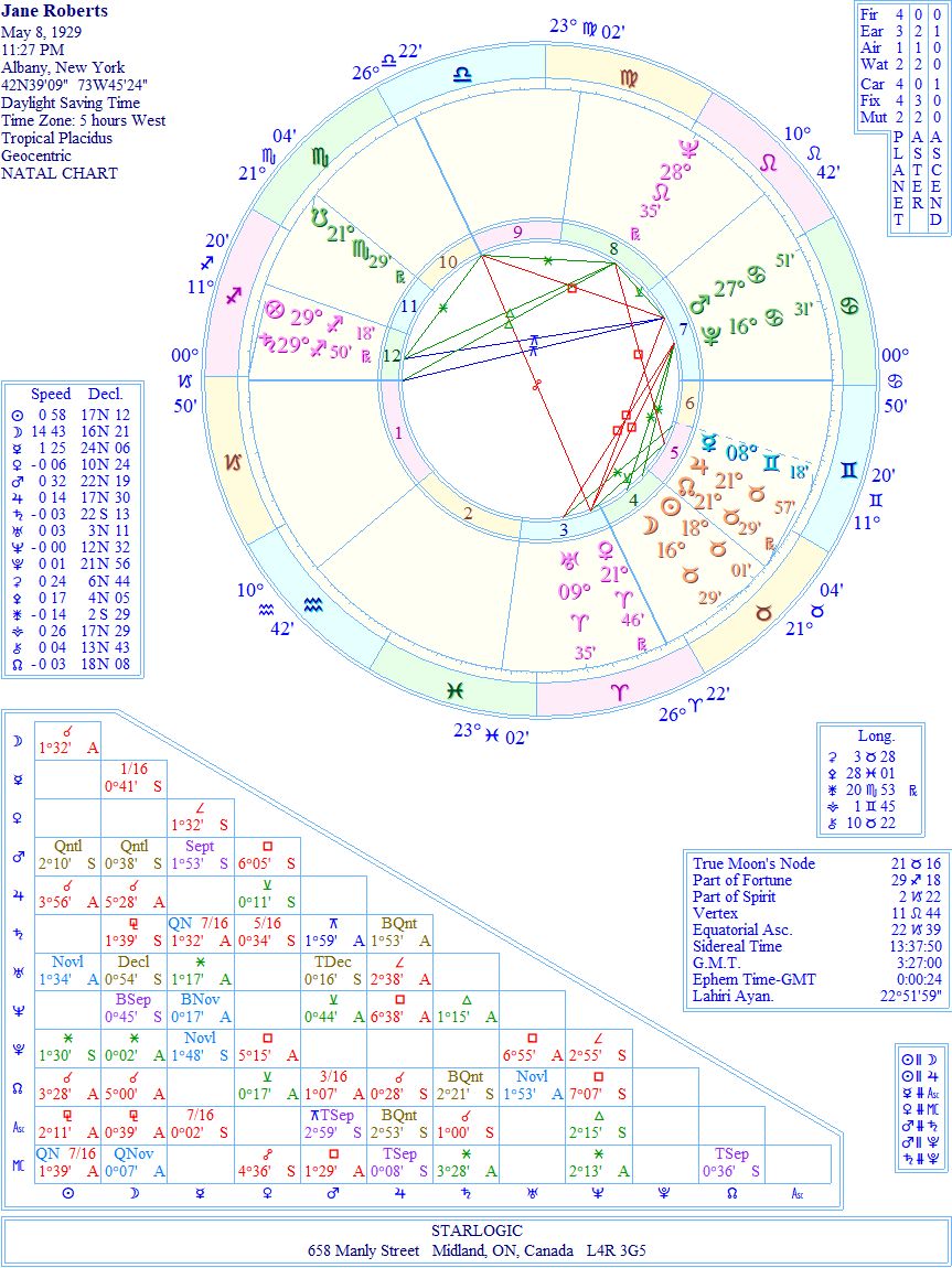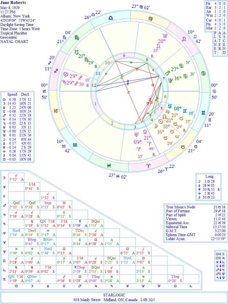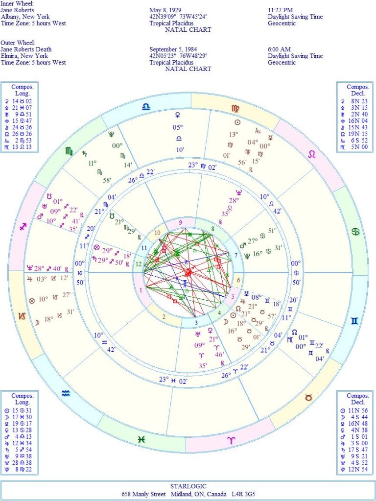 It’s a funny thing: I never thought to analyze Jane Roberts‘ birth chart, until now. Blame Cash Peters.