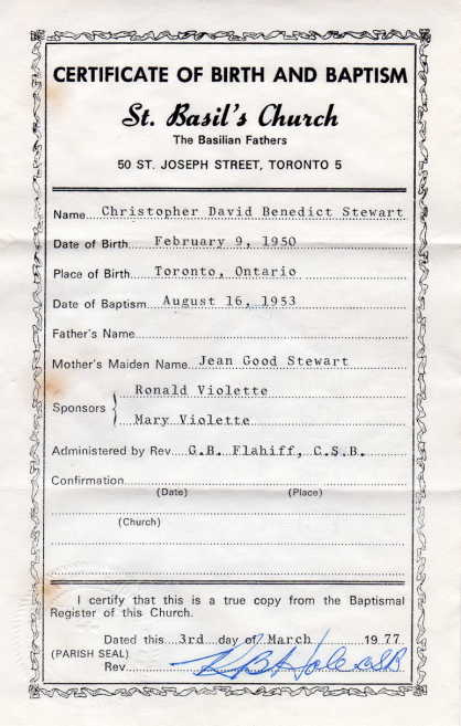 Before I was a United Church of Canada preacher’s kid, and way before I became an Anglican server (in my teens), I was baptized Catholic. I even have the certificate to prove it: