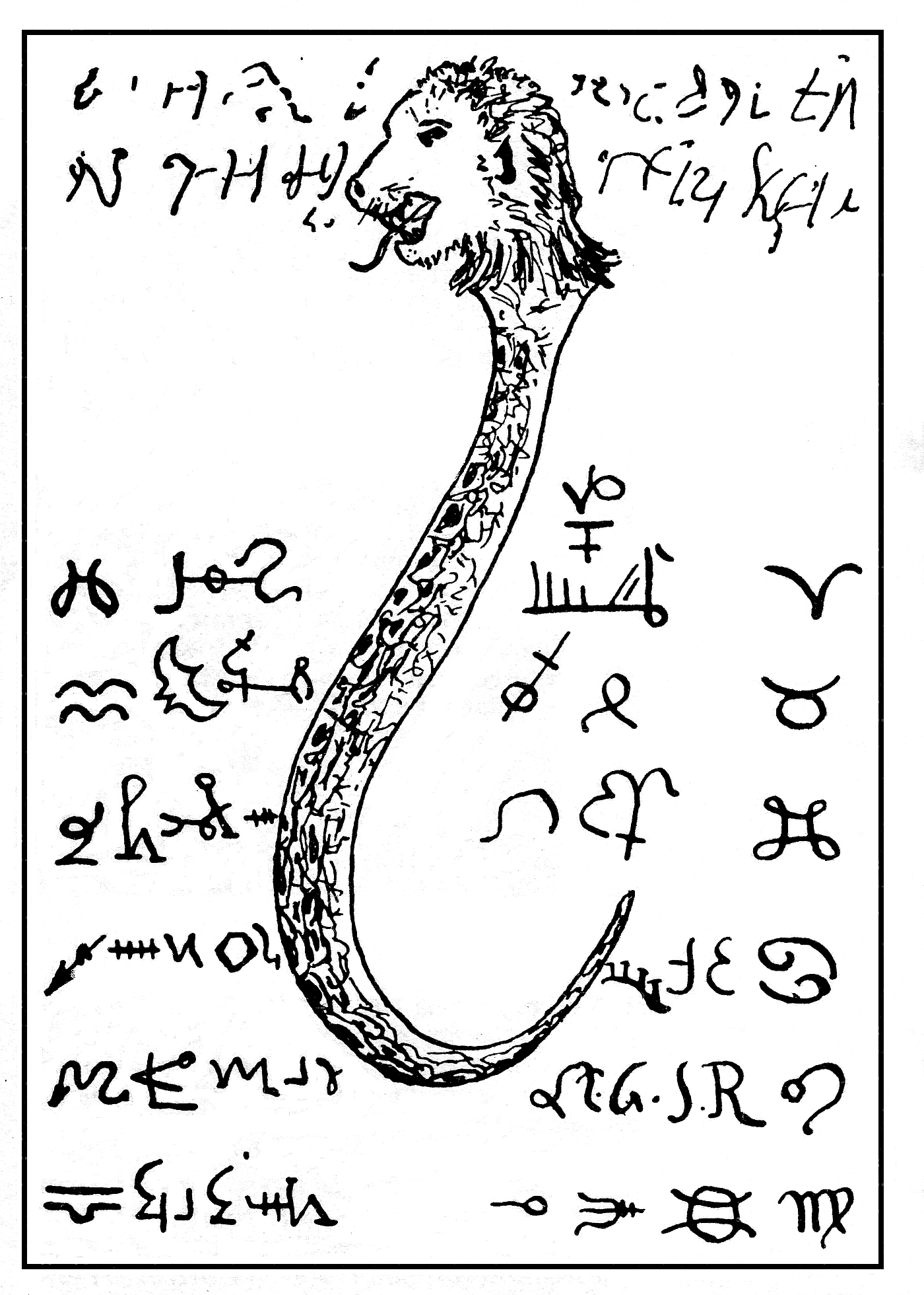 What I find fascinating is that the ‘script’ running along both sides of this image represents the astrological signs (Aries to Virgo on the right side, Libra to Pisces on the left, but upside-down). I wonder who wrote this? (Part of me thinks that it was John Dee.) In fact, this looks as if planetary aspects and/or positions are being highlighted.