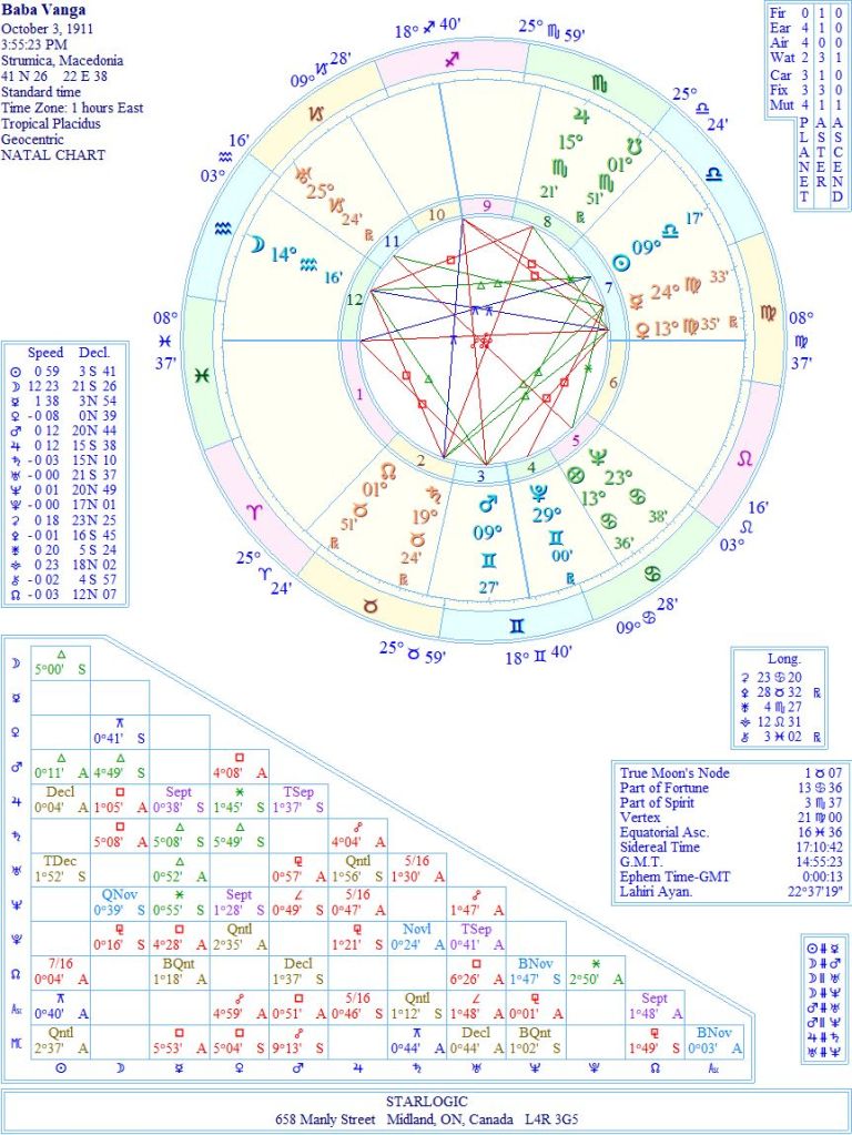 Every other week, I read on MSM (and Facebook) that Baba Vanga has made yet another prophecy which may come true in 2023. So, it made me want to ‘see’ what I could discover about her, astrologically.