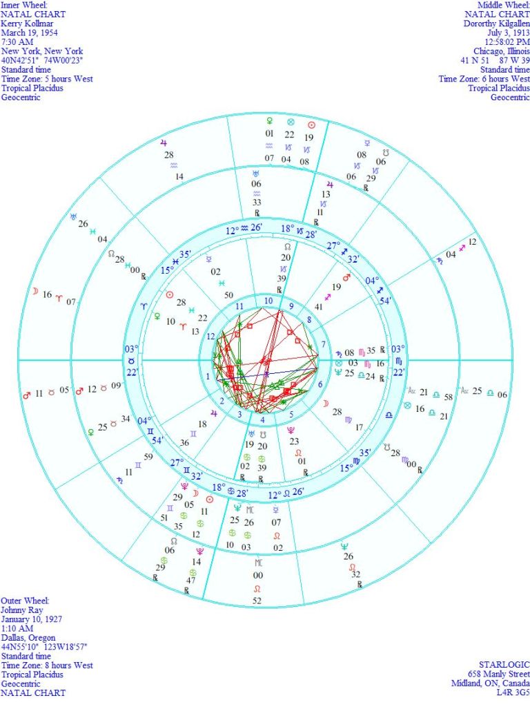 When you put together the three birth charts, it is VERY obvious that there are connections. (And the astrologers in my audience will recognize the signs quite easily.)