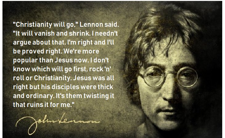 I was originally intending to repost what John Lennon said about Christianity in his 1966 proclamation that made Southern Baptists burn all their Beatles’ albums. here is what he said then…