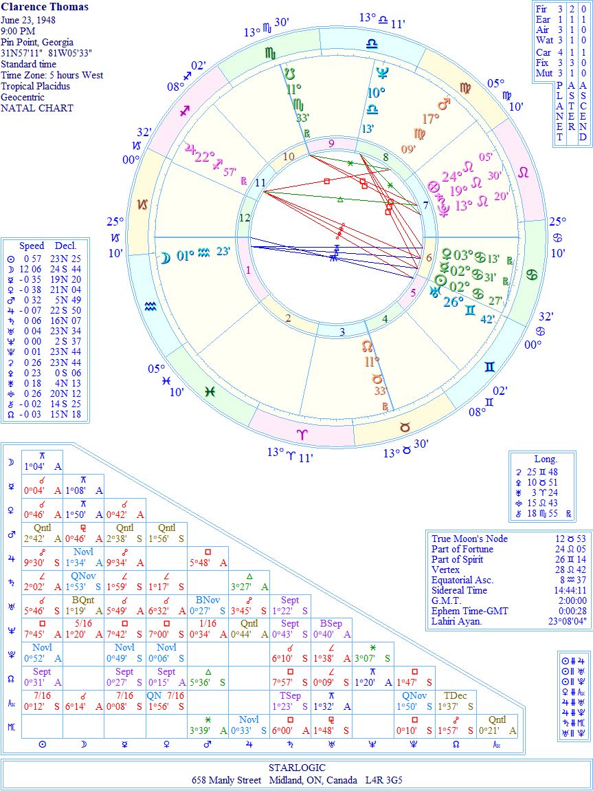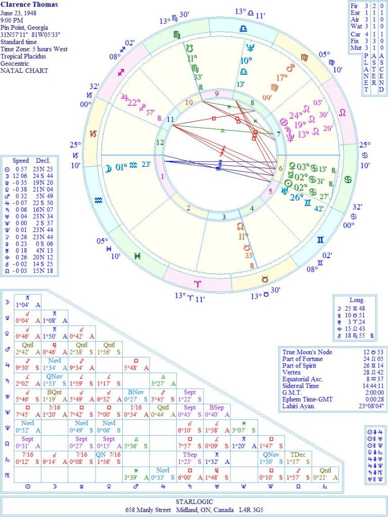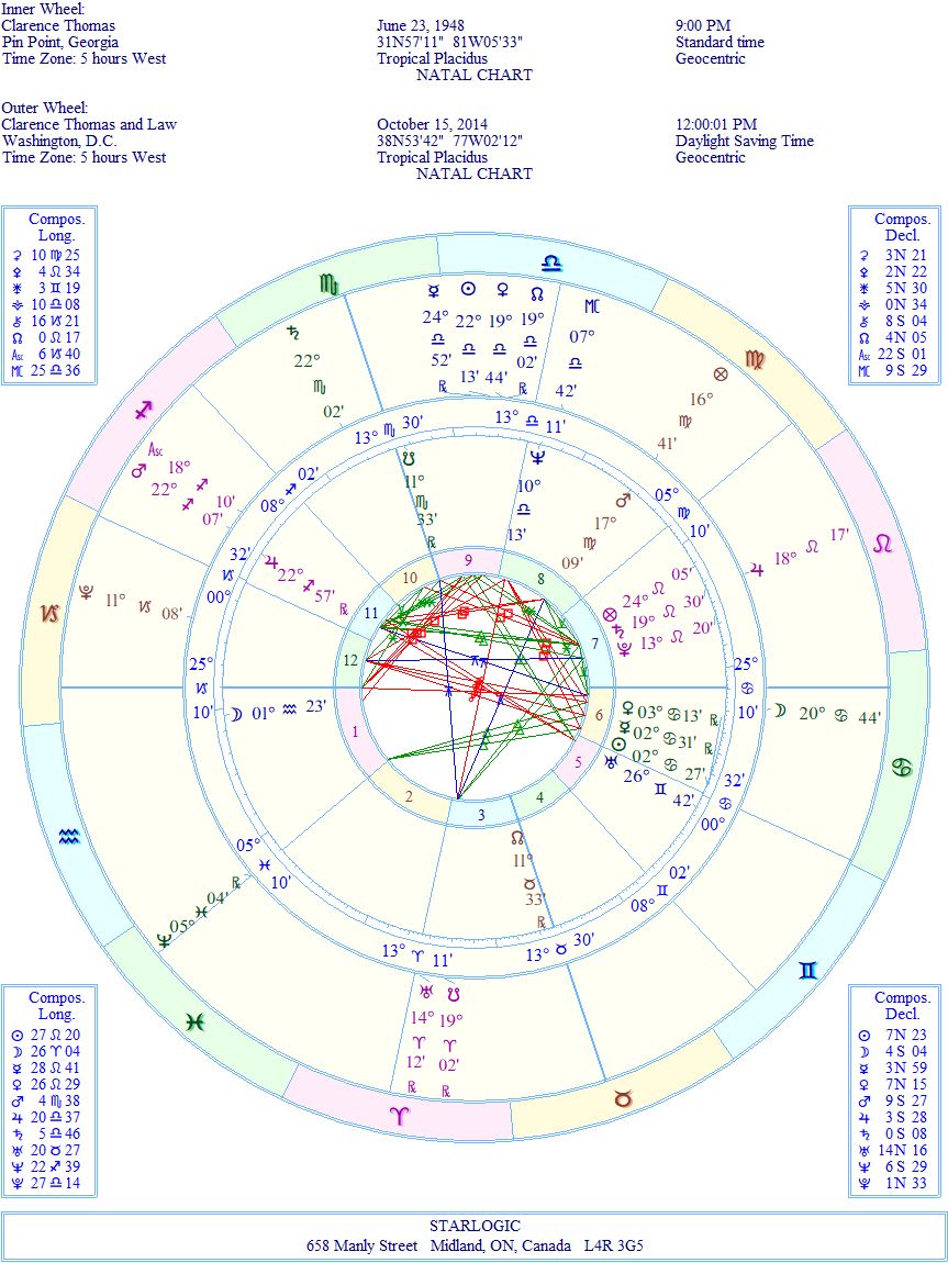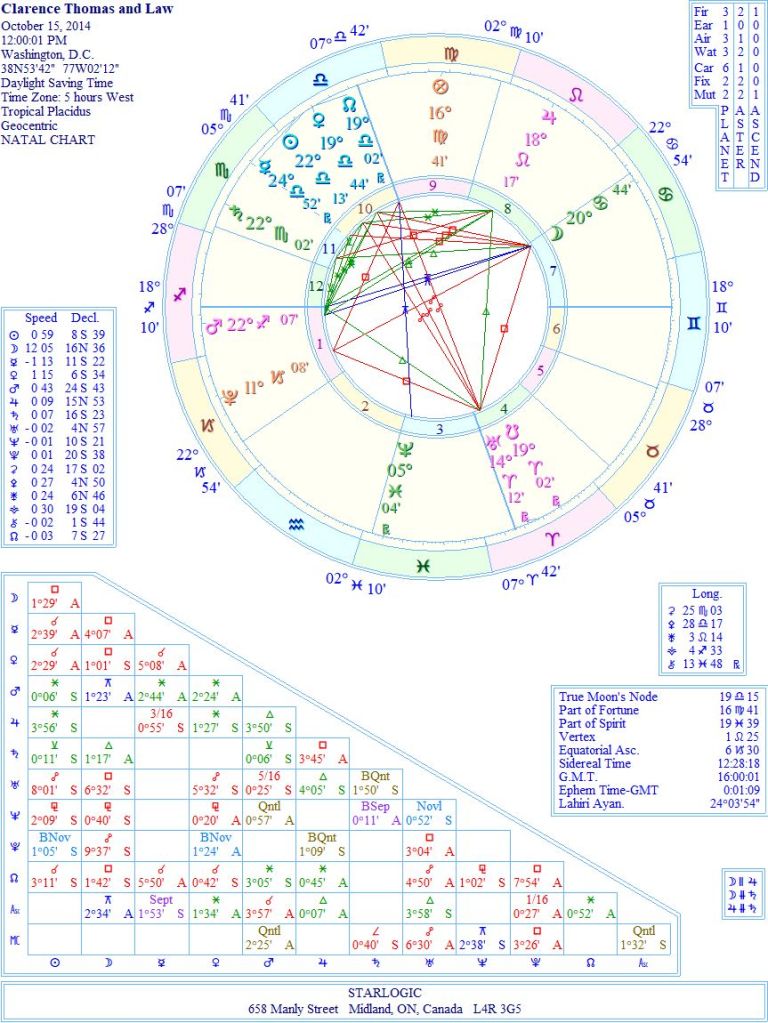There is no unconsciousness about this event. The most damning indication of the plan to hoodwink the public is shown by the event Midheaven transiting his natal Neptune. Thomas knew full well what he was doing, and the speculation that he was trying to hide his ongoing relationship with his billionaire benefactor, Crow, suggests that he was being ‘influenced’ behind the scenes, making his Supreme Court work tainted. And now he has been found out. As Perry Mason would say, “The truth will out.”