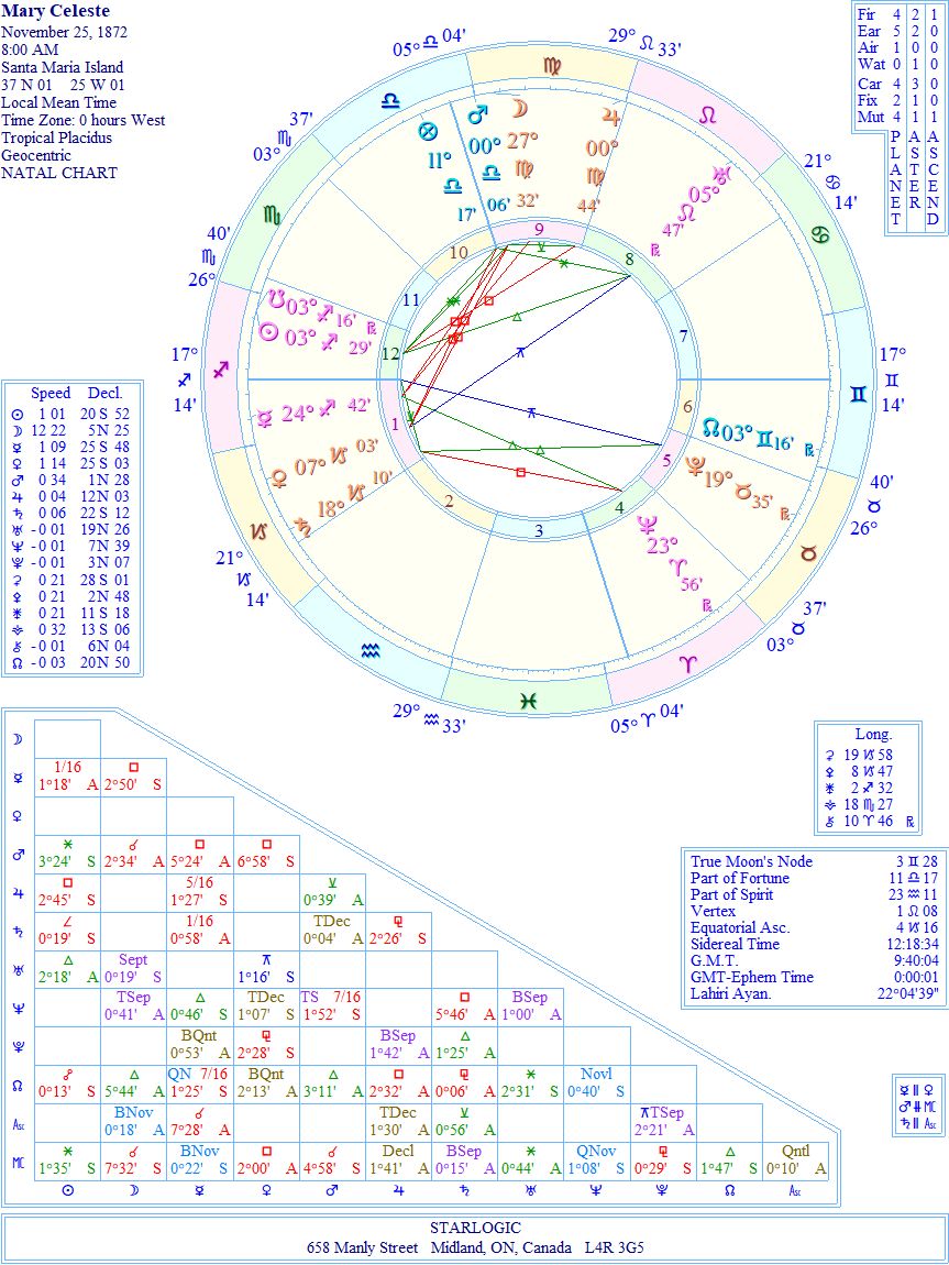I’ve chosen the timing of the final entry in the ship’s log for this chart. There are two inconjuncts.