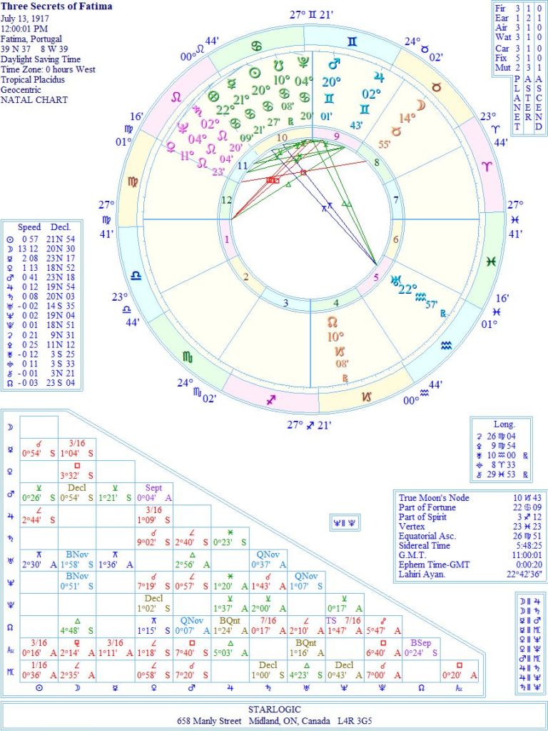 I’m going to show you two charts. The first is of the day that “Our Lady” showed the three children the three prophecies. The second is the moment that John Paul II was shot.