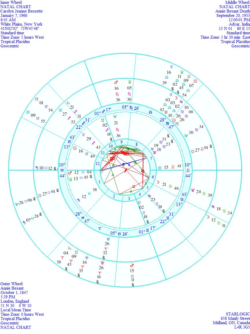 Imagine if you will the idea that a person comes back in the form of someone totally unlike their previous life, but similar enough looking to warrant further inspection. Carolyn Bessette-Kennedy may actually be Annie Besant reincarnated. (The last names are a clue, really.)