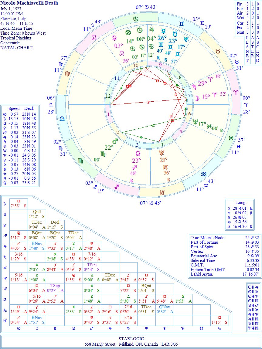 Of course, we do not know his exact time of death, so I have chosen 12 noon. There are no inconjuncts.