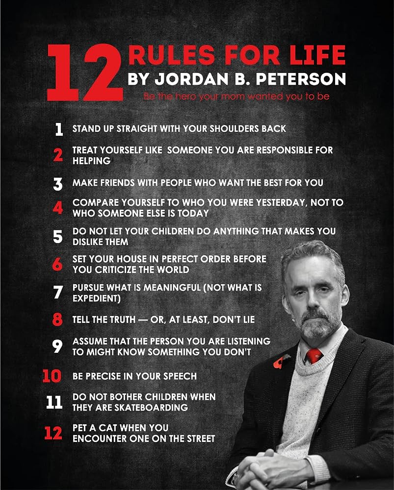 This image is apt, at least to our discussion. Jordan Peterson seems to be in a world of his own, without peers, and the psychology/media world are upset with him. Here are his 12 rules for publishing.