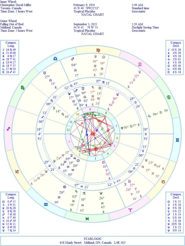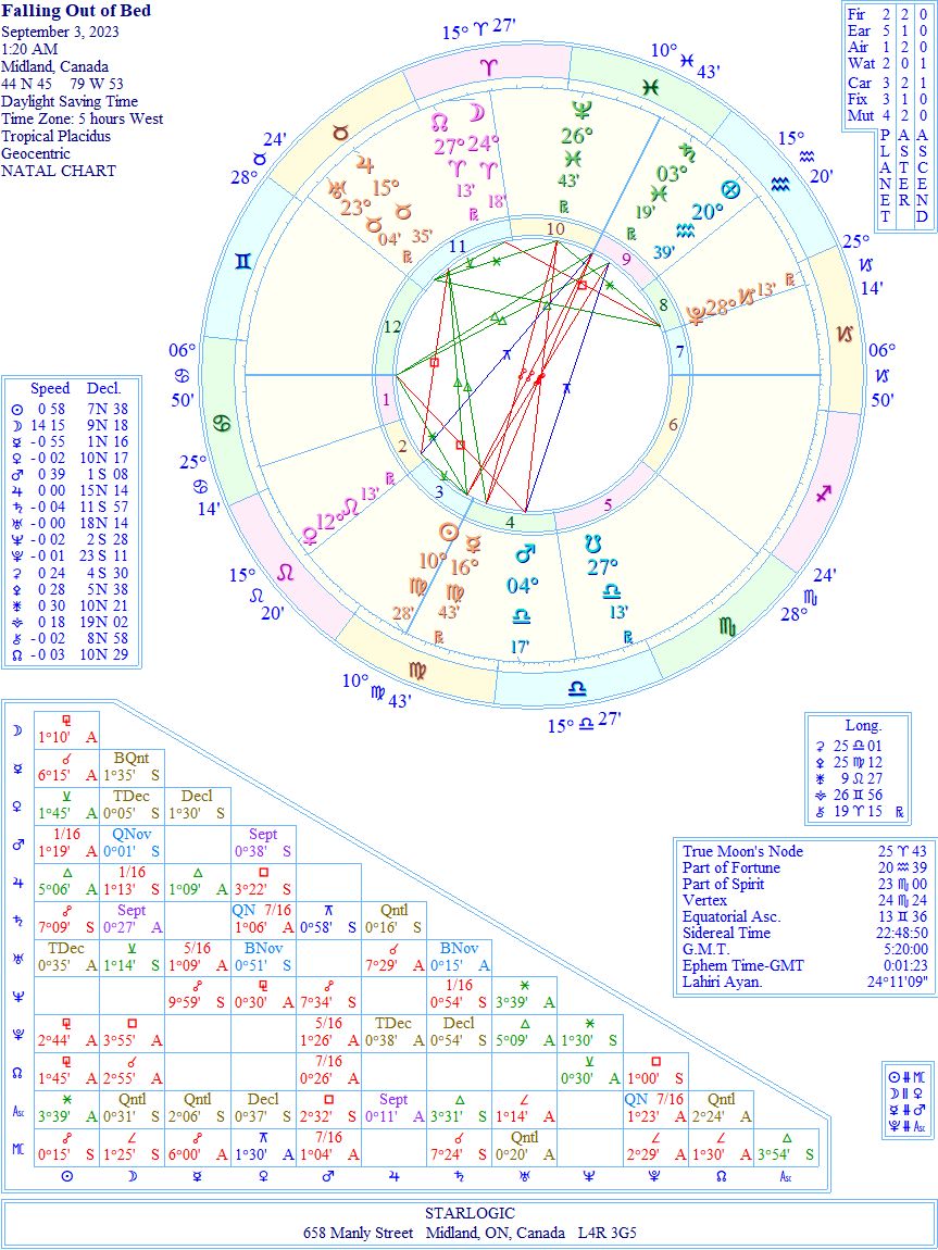 This is the exact timing of my fall, as I remember it. It could have happened slightly earlier, but that’s the time I saw when I looked at the clock. (You will see why I have written that, when compared to my birth chart.)