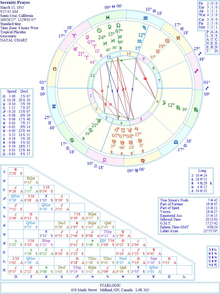 Talk about surrendering…the Yod, pointing at Neptune, is made up of inconjuncts from Mercury and the Midheaven. Alongside the Mercury/Neptune inconjunct is a second inconjunct linking Mercury and Mars. That seems to tell the story in a completely obvious way. Saturn is conjunct the Midheaven, and that aspect represents the God of this material world. Mercury in Aries is our human intellect. Mars/Neptune is our fight to rid ourselves from bondage/addiction to our passions. And when you put them together, it demonstrates that we need help to overcome our problems. Is that clear enough?