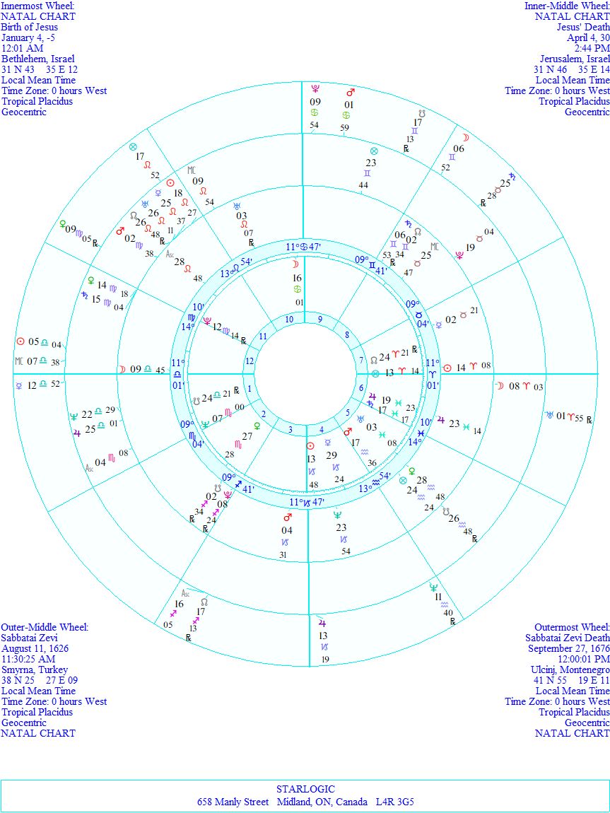 Do you see what I’m alluding to? Is Sabbatai Jesus’ evil twin? (Zevi’s natal North/South Nodes are conjunct Jesus’ ‘fatal’ Venus/Ascendant opposition.) Hmm, I wonder.
