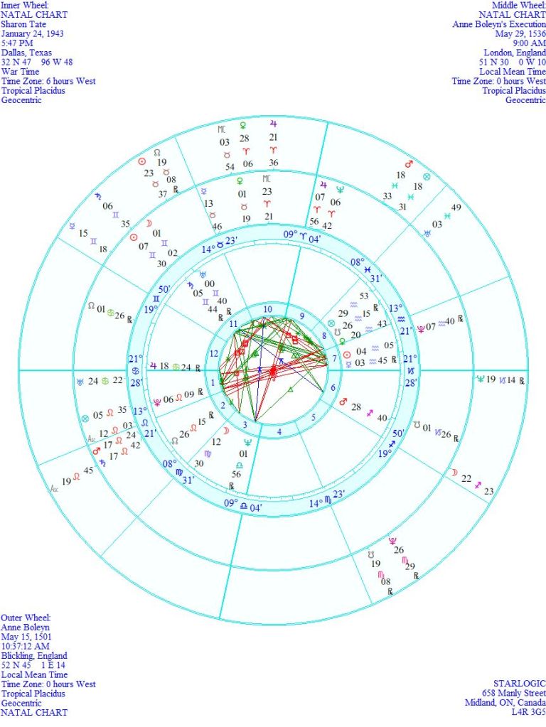 There is no way to prove that comment, because the identity of the swordsman is not known. But could Sharon Tate’s chart be enough to prove a connection to Anne Boleyn? Of course, it could.