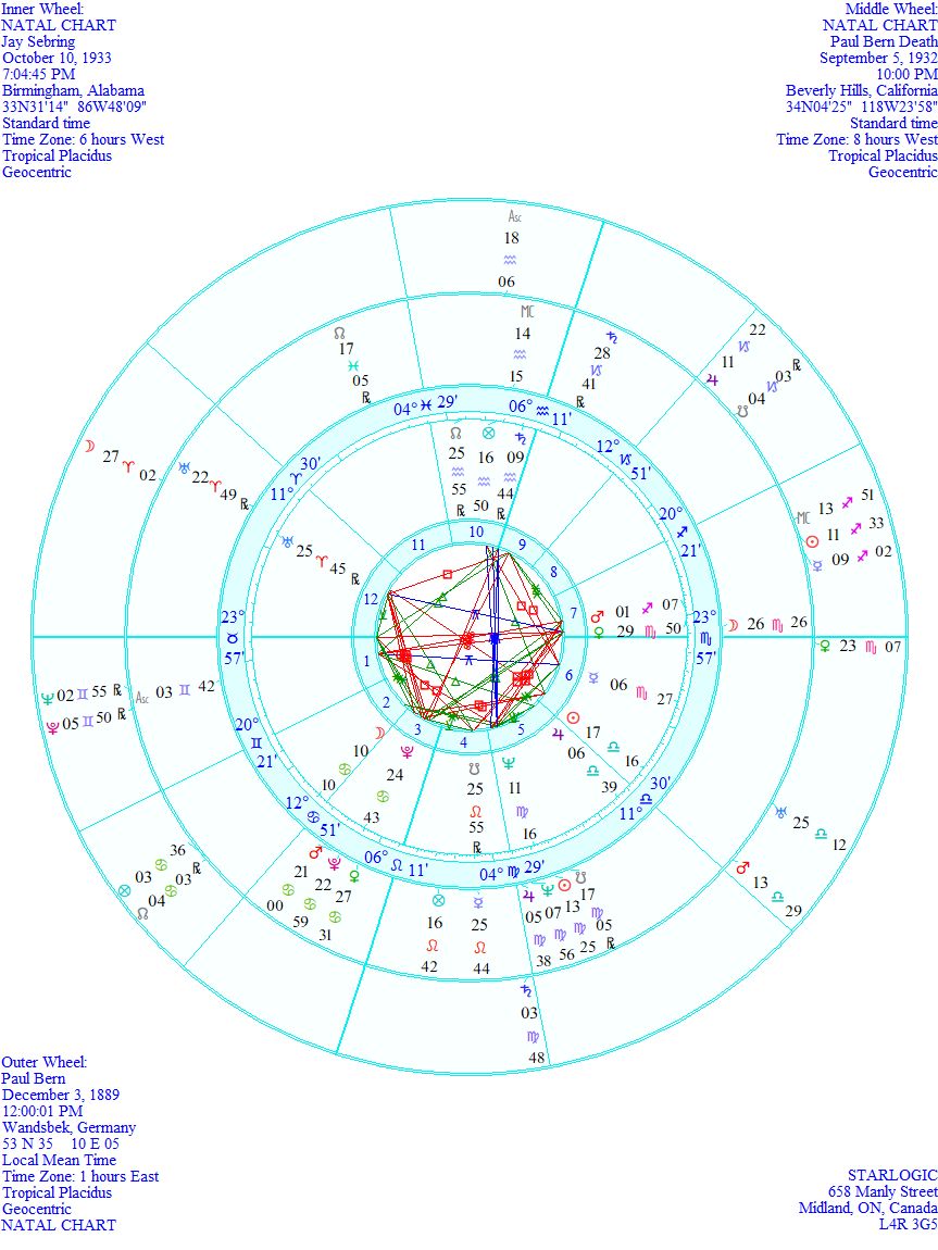 Jay’s Part of Fortune is conjunct Paul’s natal Ascendant. Jay’s Uranus is conjunct both Paul’s natal Moon and Paul’s ‘fatal’ Uranus. Jay’s Moon is in a wide conjunction to Paul’s natal North Node/Part of Fortune conjunction. Jay’s South Node is conjunct Paul’s ‘fatal’ Mercury. Jay’s Sun is conjunct Paul’s natal Mars. Jay’s Ascendant is opposite Paul’s natal Venus. Jay’s Venus/Mars conjunction is conjunct Paul’s ‘fatal’ Moon. Do you see how this ghost story is lining up? Jay wanted to undo the errors of the past by befriending Sharon, and being faithful to her, even unto death. What more can I say?