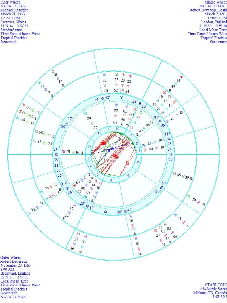 There is a similar look, for sure, but Robert Devereux’ life was cut short when he was executed at age 35. Michael Heseltine is still going strong at 90.