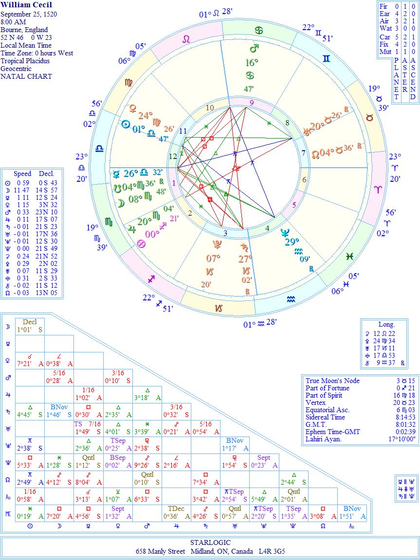 I asked Luke, in an email, if he was an astrologer. Because he wasn’t expecting me to respond that way, he probably deleted my communication as ‘spam’. His ‘spot-on’ connections between the first and second reigns of Elizabeth cannot be based just of their looks, surely. Something else has to be inspiring his choices. Perhaps in this case, it’s the name “Cecil”. After all, stranger things have happened.