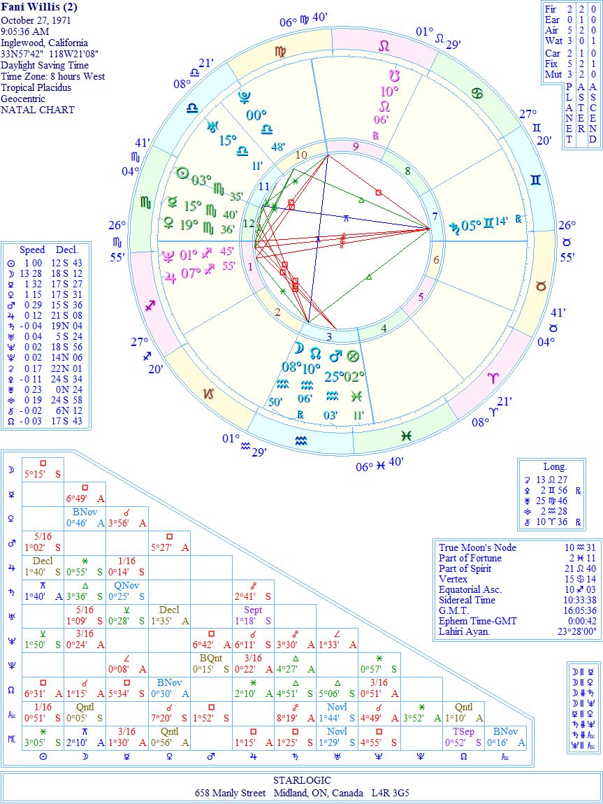 Circling back on my original post about Fani Willis, I see now that most online sites have decided that her birth year is 1971, not 1970 as originally presumed. That means I need to revisit her birth chart.