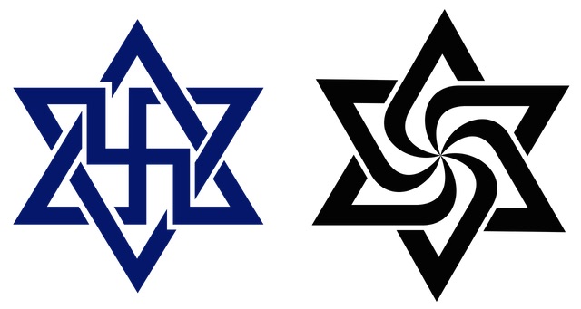 As you may remember, I was a ‘card-carrying’ Raelian in the early 1980’s. The above symbol was their badge of honour. Rael used to wear a metal one as a medallion. These days the swastika has morphed into a pinwheel. The early symbolism was a hint that the god Yahweh was also connected to Hinduism. Swastika is from a Sanskrit word that means “conducive to well-being”. It was the Nazis that turned this symbol into one that wasn’t conducive to well-being. It became a symbol of evil.