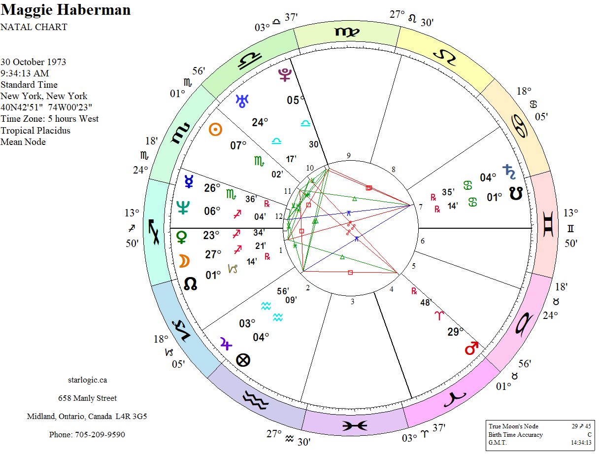 I won’t delineate the aspects, as the chart may be inaccurate in some respects. And also out of respect for her journalistic endeavours.