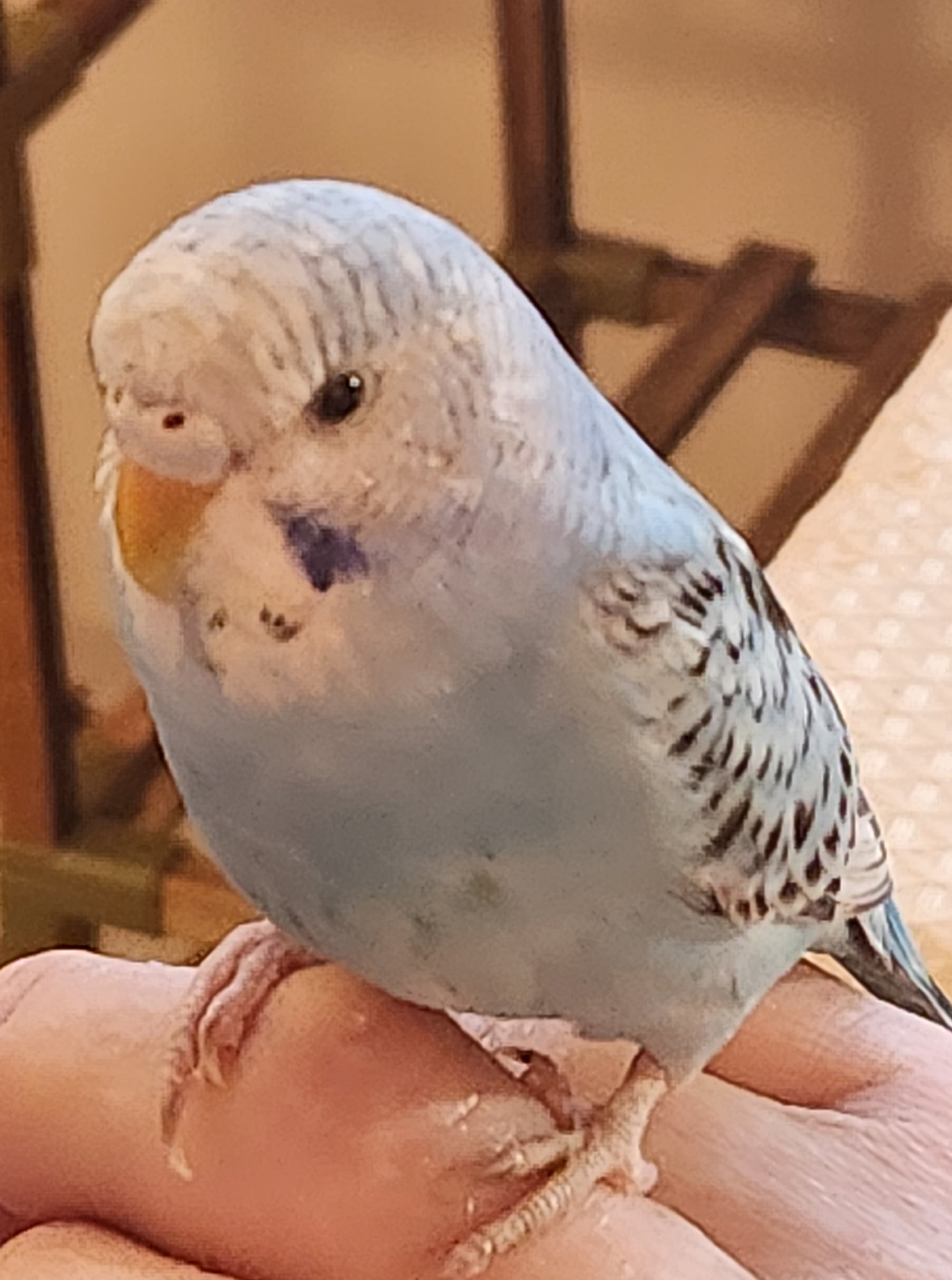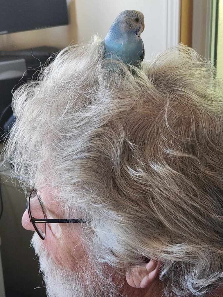 Remember that Jupiter/Uranus conjunction in Taurus, last Saturday? Here’s the result: a new baby bird (12 weeks old) to add to the mix of our menagerie. We now have a “3-Body Problem” The other two are bonded together, and Destiny represents an upset to the status quo. Deja has to share her cage with Destiny at night, and we hear a lot of Deja’s objections, usually in the form of verbal scolding that is the equivalent of ‘get away from me, don’t touch.’ I suppose they’ll work it out eventually.