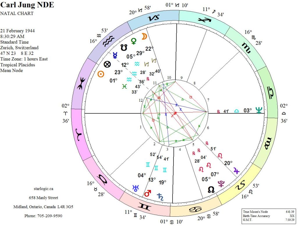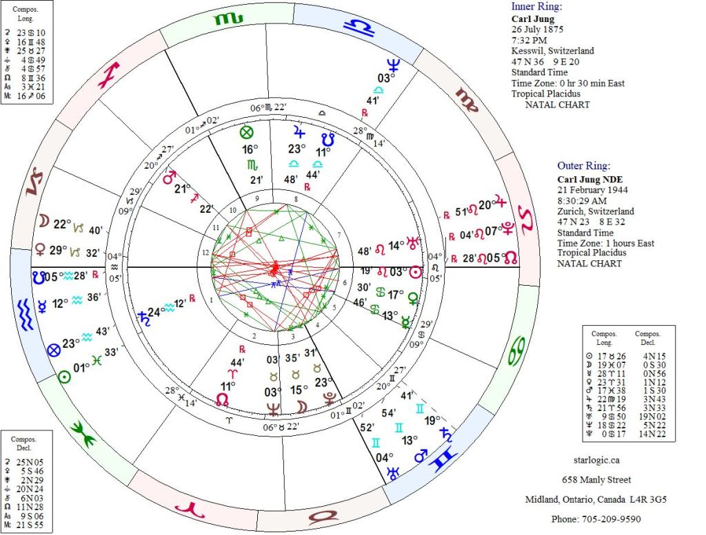 The NDE South Node is conjunct Jung’s Ascendant (and conversely, the NDE North Node is on Jung’s Descendant, conjunct his natal Sun). This looks like one of Jung’s exit points. Otherwise, how can one explain it?