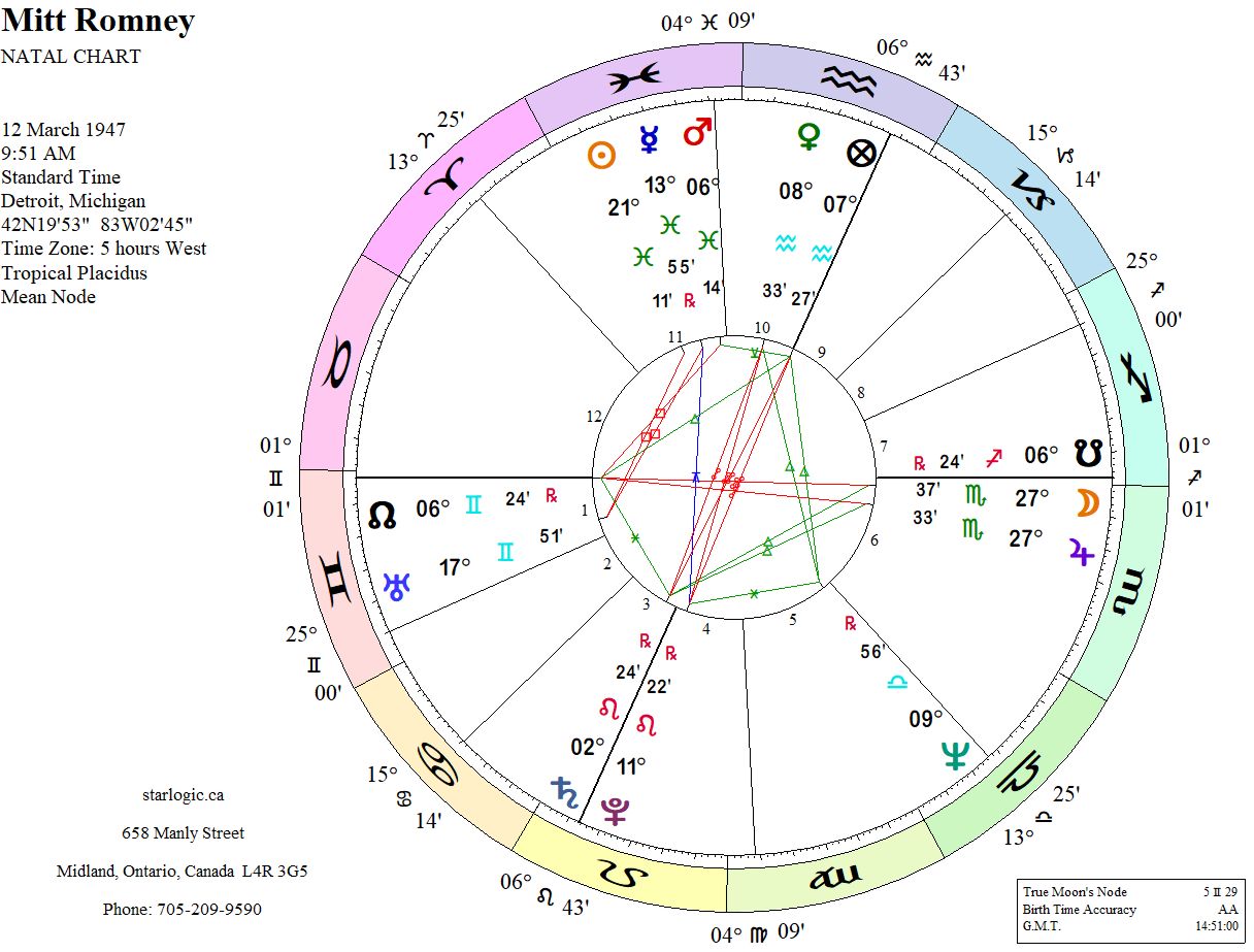 So, I decided to look at Mitt Romney’s birth chart to see why he would say such a thing.