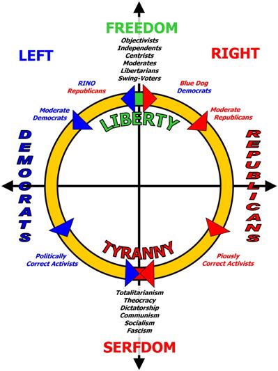 Imagine the political spectrum as a circle where people’s ideas about how the government should work fit around it.