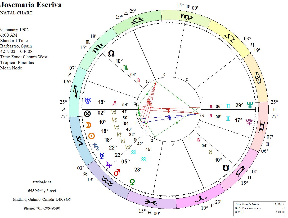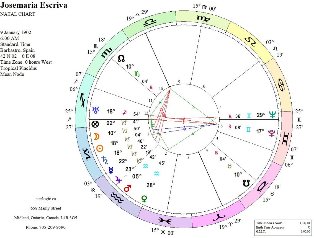 He was 26 years old when he “saw” Opus Dei. That information allowed me to rectify his birth chart.