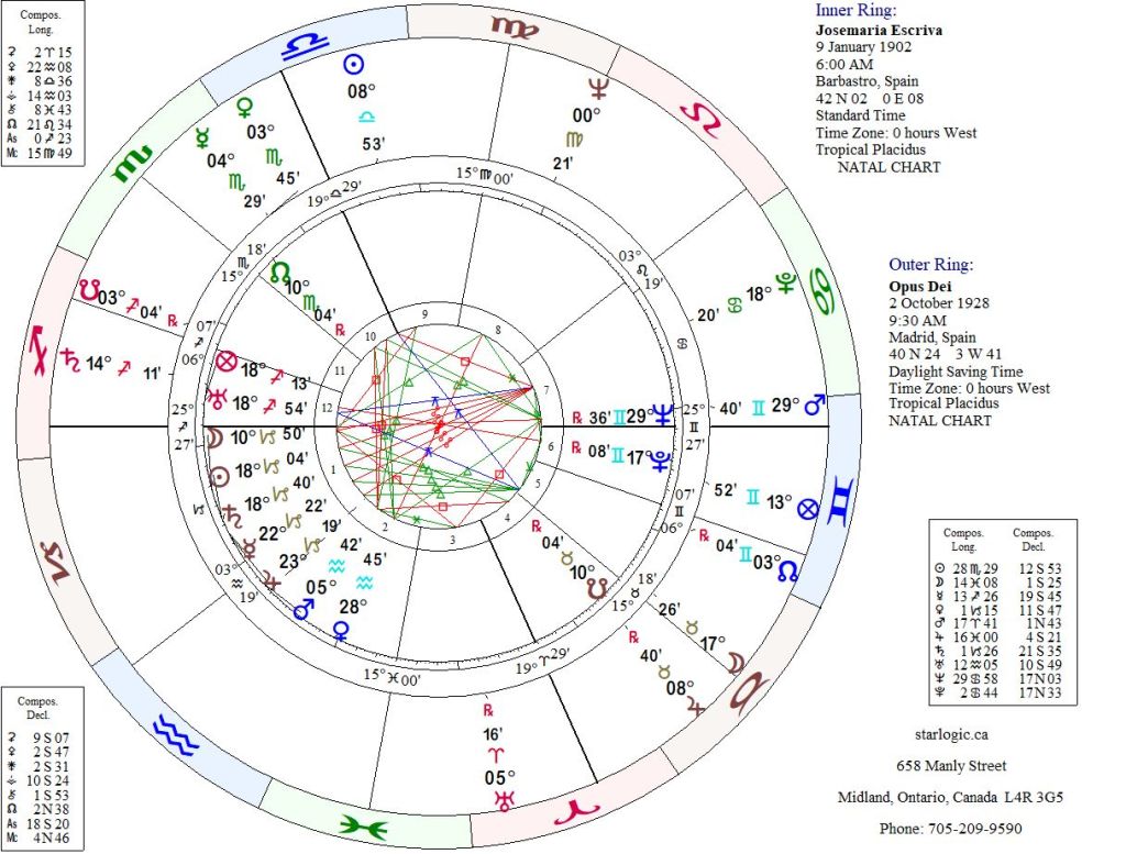 When you combine his birth chart with the Opus Dei chart, you get an interesting echo.