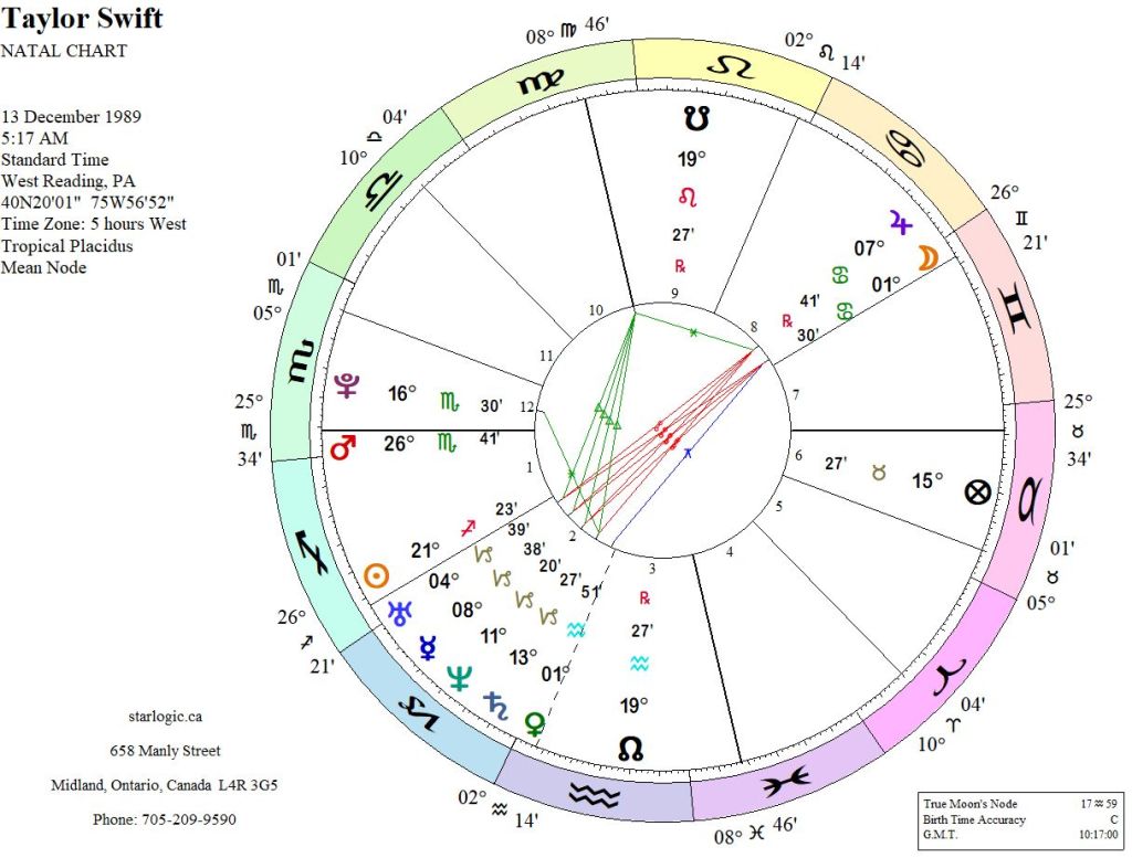 Taylor Swift’s birth time is unknown, so other astrology sites have rectified her birth chart to bring Mars into focus for the Ascendant.
