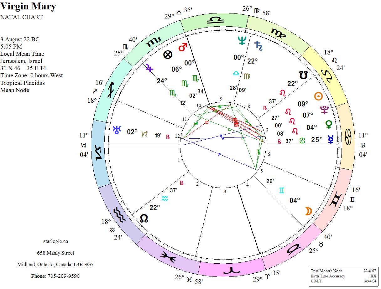 I know, I know, how is that even possible? Well, if you take the starting point of Jesus’ birth on January 6, 6 BC and work backwards, Mary was supposed to have been about 15 years of age when he was born. The August 5th birthdate is speculative. Even the time of day is random. And a birthplace of Jerusalem is given, since her father had something to do with the Temple priesthood.