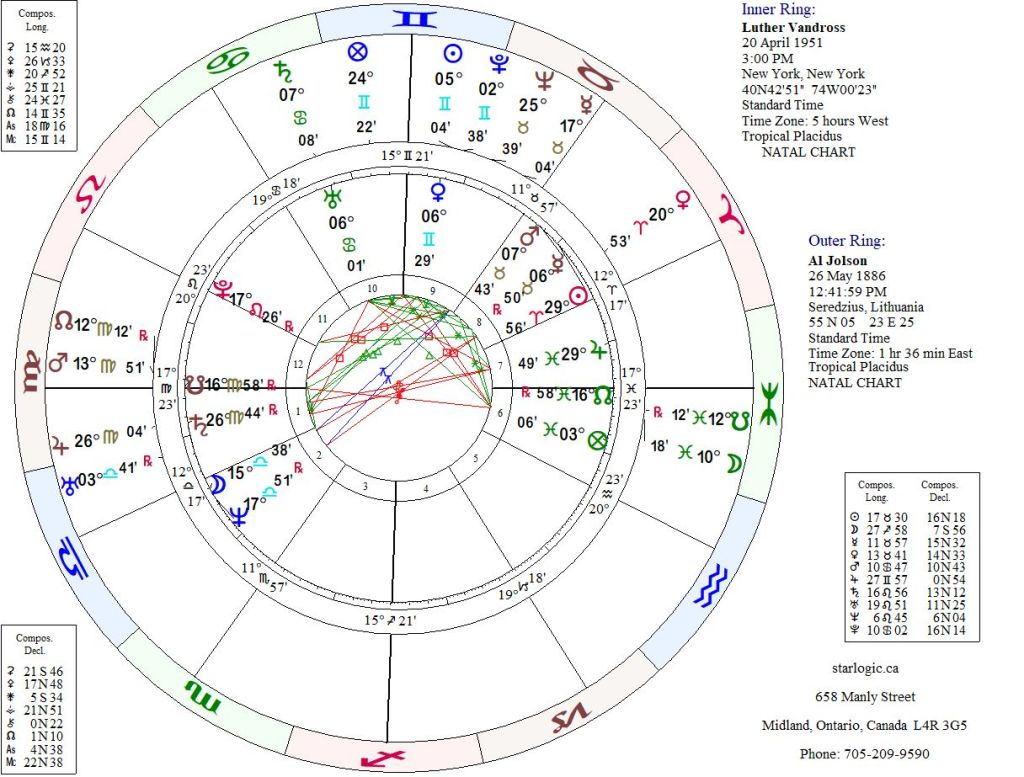The timing of this birth chart is randomized. It had a similarity to Vandross’ that made me think, “Wow!”