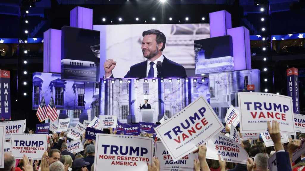 MILWAUKEE, WISCONSIN – JULY 17: Republican vice presidential candidate, U.S. Sen. J.D. Vance (R-OH) speaks on stage on the third day of the Republican National Convention at the Fiserv Forum on July 17, 2024 in Milwaukee, Wisconsin. Delegates, politicians, and the Republican faithful are in Milwaukee for the annual convention, concluding with former President Donald Trump accepting his party’s presidential nomination. The RNC takes place from July 15-18. (Photo by Alex Wong/Getty Images)