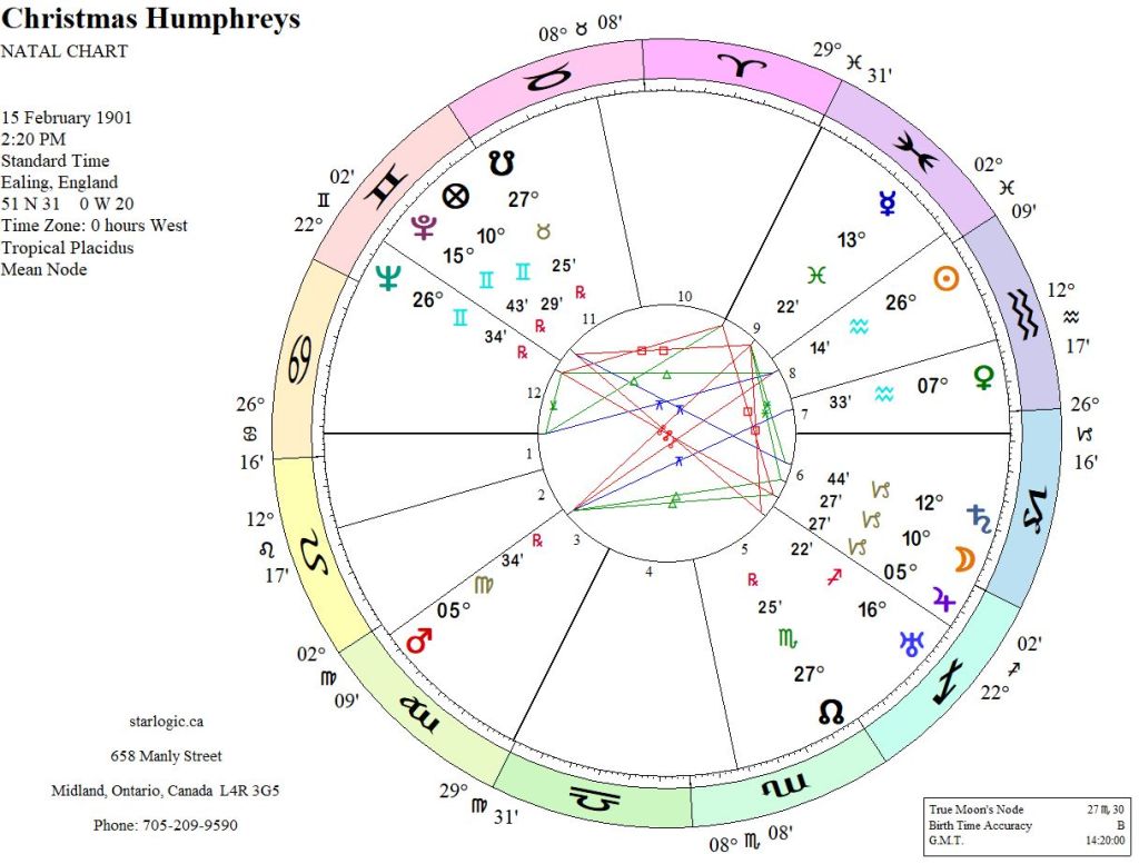 The timing of this chart was based ‘from memory’ (but whose memory I know not). As there are three inconjuncts, we have some clues as to what made the man a Buddhist.