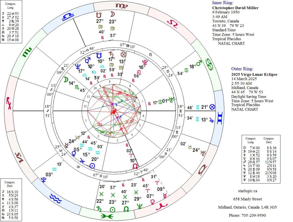 Not surprisingly, the eclipse affected me personally: The eclipse’s Mars in Cancer is the apex of an interactive Yod, formed by inconjuncts to my natal Sun and Ascendant (which is just under 3° from the eclipse’s Ascendant). The eclipse’s Moon is within 5° from my natal Saturn. And my natal Uranus is inconjunct to the eclipse’s Pluto. I feel ‘mad as hell and I’m not going to take this anymore.’