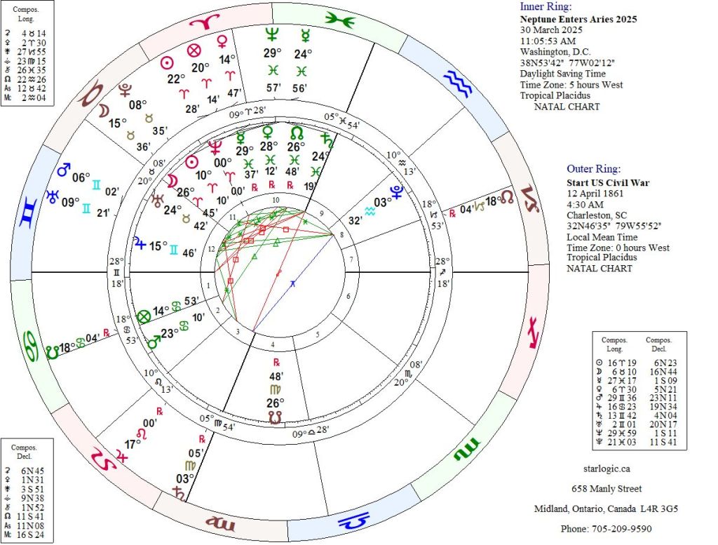 It’s strange how some things slip under the radar, even for me. Ellie Adams (Saturn Season Astrology) has been highlighting this event for about four years, now. Her latest video speaks of the last time Neptune entered Aries: one day after the start of the American Civil War (April 13, 1861).