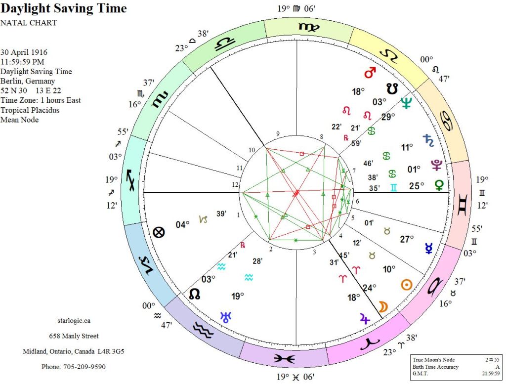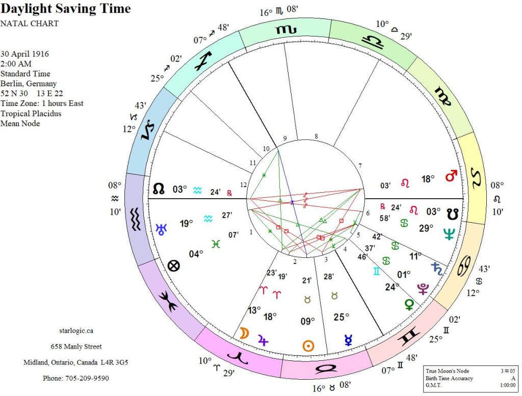 Not to put too fine a point on it: the implication is that the Germans actually changed the time at the end of the day, not at the beginning, so that May 1st would be the first full day under Daylight Savings. And my confirmation of that fact was yet another chart that was timed for 1 a.m. on May 1st. This time the computer program showed that the chart was under DST.