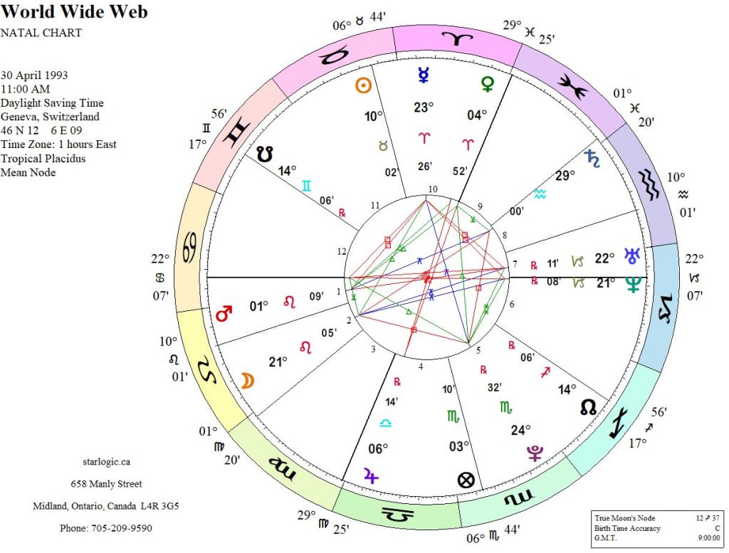 As you know, I try to see what the energies that existed on any day in history by raising an event chart. This one speaks volumes, starting with Uranus and Neptune conjunct in opposition to a Cancer Ascendant. There are four inconjuncts, the most important of these are the two connecting the Moon with said Uranus/Neptune conjunction. Mercury is inconjunct Pluto, and lastly, Mars in the 1st House is inconjunct Saturn in the 8th House. Renaming the World Wide Web as the World War Web isn’t wrong.